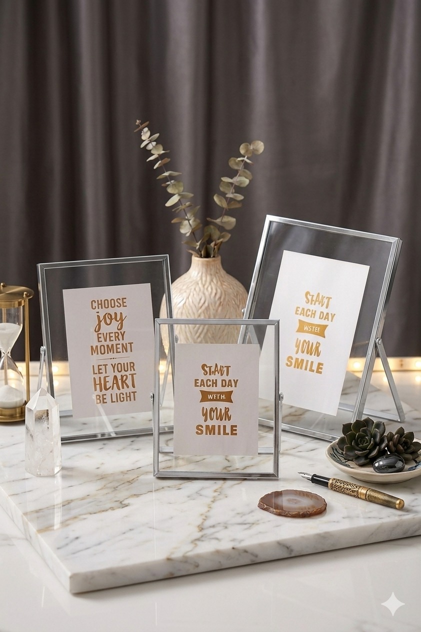 - 10x15 cm, 13x18 cm ve 15x21 cm boyutlarındaki şık dekoratif fotoğraf çerçevesi, anılarınızı sergilemek için idealdir.; - Dayanıklı metal malzemesi ile uzun ömürlü kullanım sunar ve estetik görünümüyle mekanınıza modern bir dokunuş katar.; - Tek parça halinde gelen bu çerçeve, kolay montaj avantajı sağlar ve ekstra parçalarla uğraşmanıza gerek kalmaz.; - Ayaklı tasarımı sayesinde sabit duruşuyla dengeli ve sağlam bir görünüm sunarken, çift camlı yapısı fotoğraflarınızın net ve canlı olmasını sağlar.;