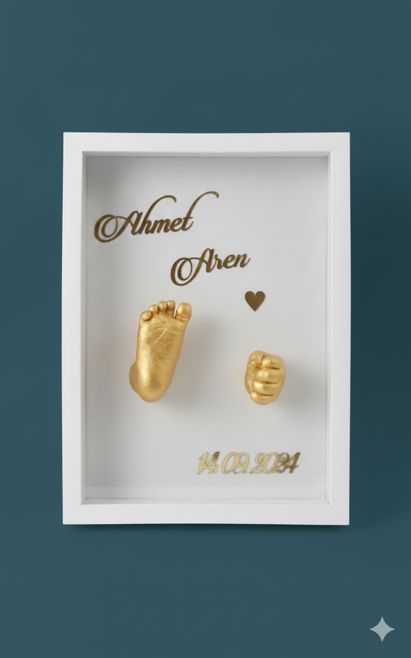25x35x5 Cm Bebek El Ayak Gold Heykel Yapım Kiti ve Beyaz Derin Anı Çerçevesi 3D Kalıp Alma